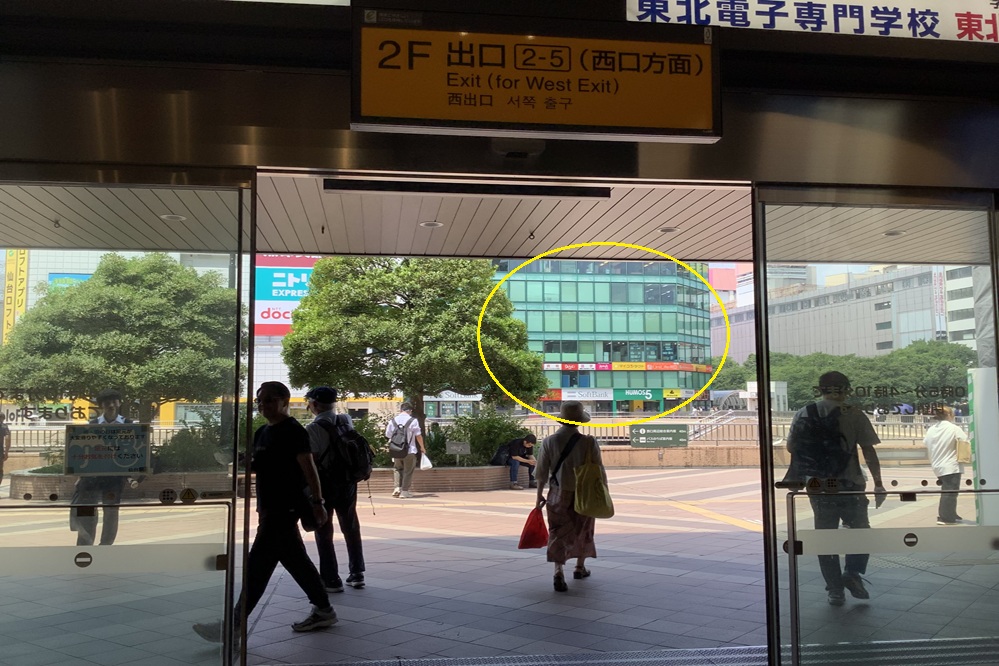 仙台駅2階 出口2-5(西口方面)より外に出ます -