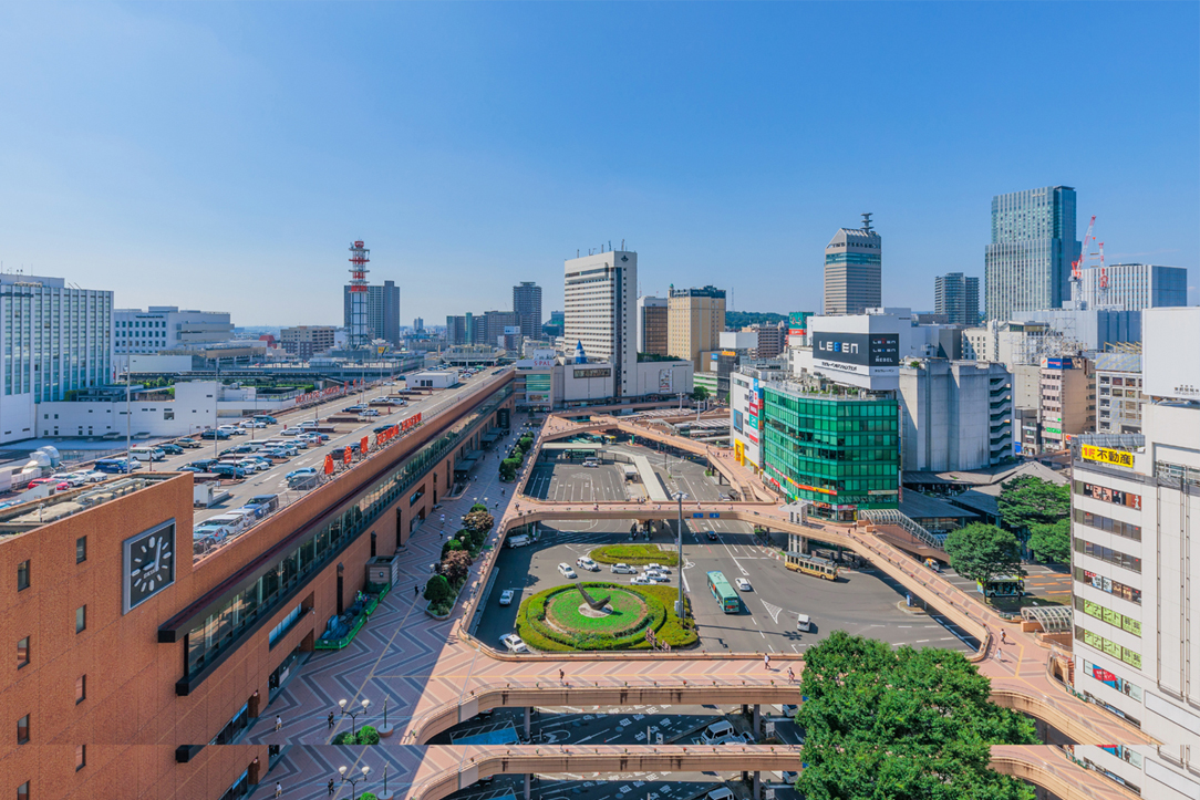 仙台駅からビルまではペデストリアンデッキ直結です -