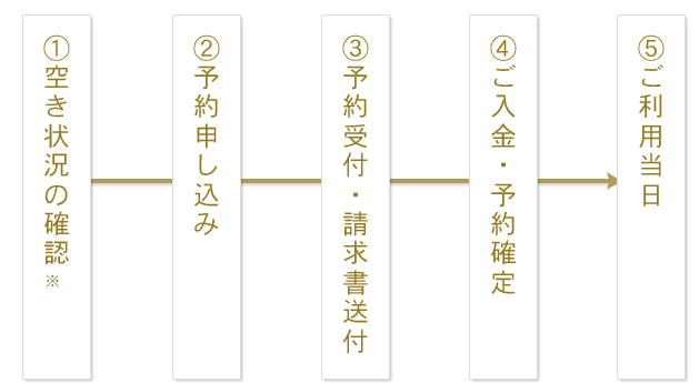 ご入金はご利用日から5営業日前までにお振込み下さい。ご入金を確認して予約確定となります。